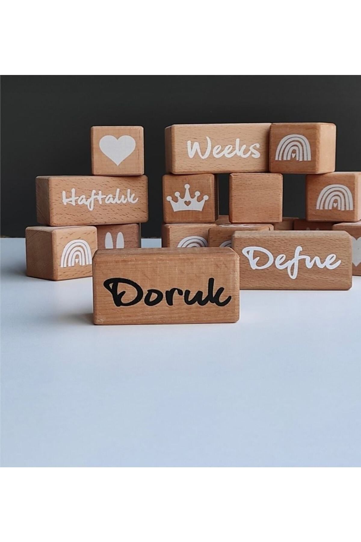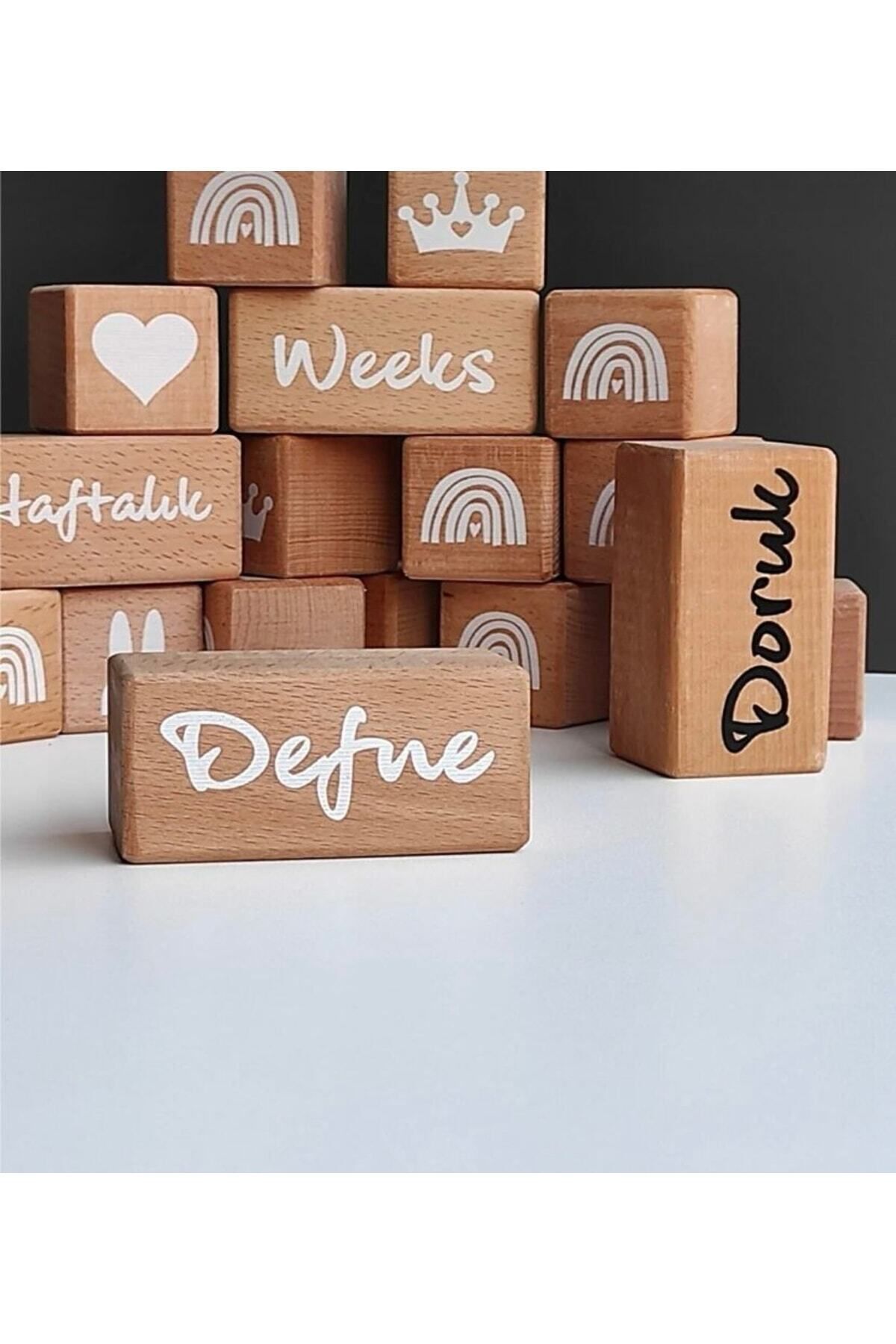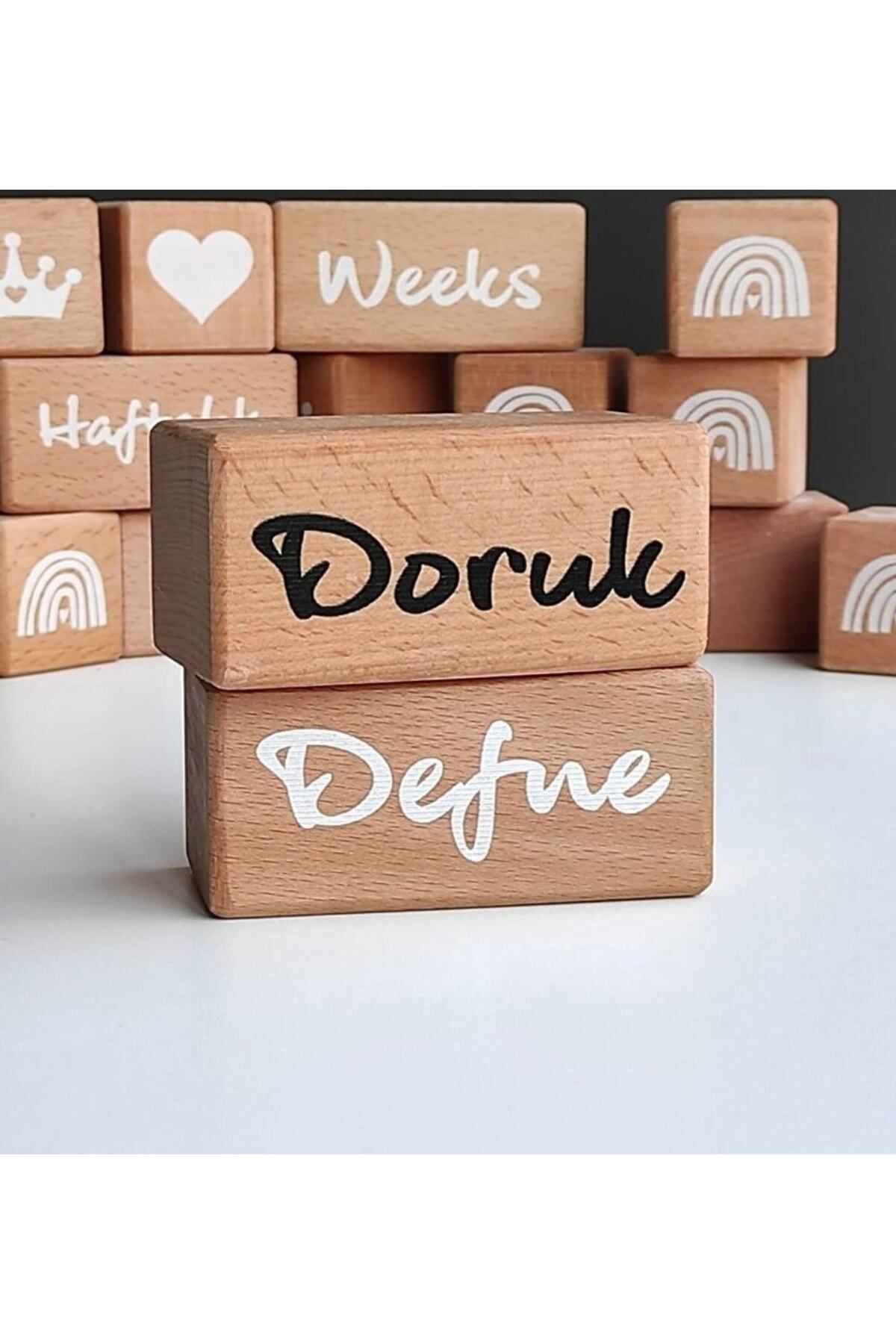 - Bebeklerin ilk adımlarını kutlamak için ideal bir hediye seçeneği olan ahşap anı küpleri, çocuğunuzun ismini taşıyan özel bir hatıra olarak evinize şıklık katar; - Fotoğraf çekimleri için mükemmel bir dekoratif obje olan bu küpler, bebeğinizin ilk günlerinden itibaren anılarınızı ölümsüzleştirir; - Tekli set halinde sunulan bu ürün, kolayca monte edilebilir ve kişisel dokunuşlarla özelleştirilebilir; böylece bebeğinizin odasına sıcaklık ve sevgi katar; - Bebeklerin yaş grubuna uygun tasarlanmış olan bu isim küpleri, minik ellerin kolayca kavrayabileceği boyutlarda olup, güvenli ve dayanıklı malzemeden üretilmiştir;