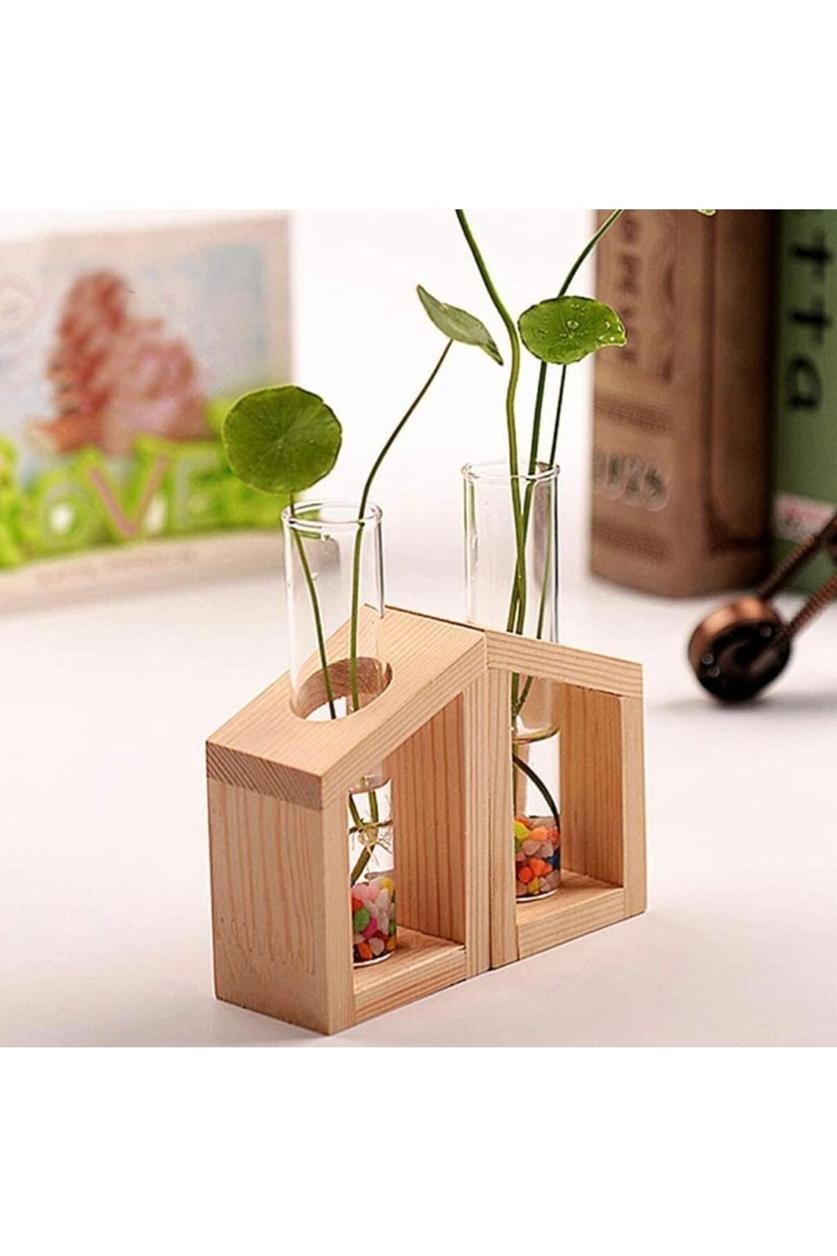 Kullanım alanı: Ahşap cam tutucu bitkilerin yetiştirilmesi, modaya uygun bir şekilde dikilmesi ve bitkilerin büyüme durumunu gözlemlemek için çok uygundur. Bu güzel ve zarif vazo sadece mekanınızı dekore etmekle kalmaz, aynı zamanda vazo size eşsiz bir yaşam cazibesi sunar. Şık bir yaşam atmosferi yaratın, hayatınızı daha şiirsel ve rahat hale getirin. Paket İçeriği 2x Ahşap taban. 2 x Cam Test Tüpü Ölçüler ; Ahşap deney tüpü tutucu: Uzunluk = 5cm / Genişlik = 5cm / Yükseklik = 9 cm, ; Deney tüpü: Yükseklik = 15 cm / Delik çapı = 2.5cm / ;