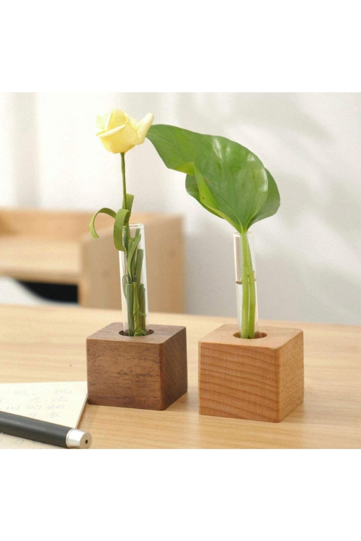 Ahşap Standlı Çiçek Vazosu Modern Masa Dekorasyon Ev, Bahçe Dekorasyonu Bitki Köklendirme ,