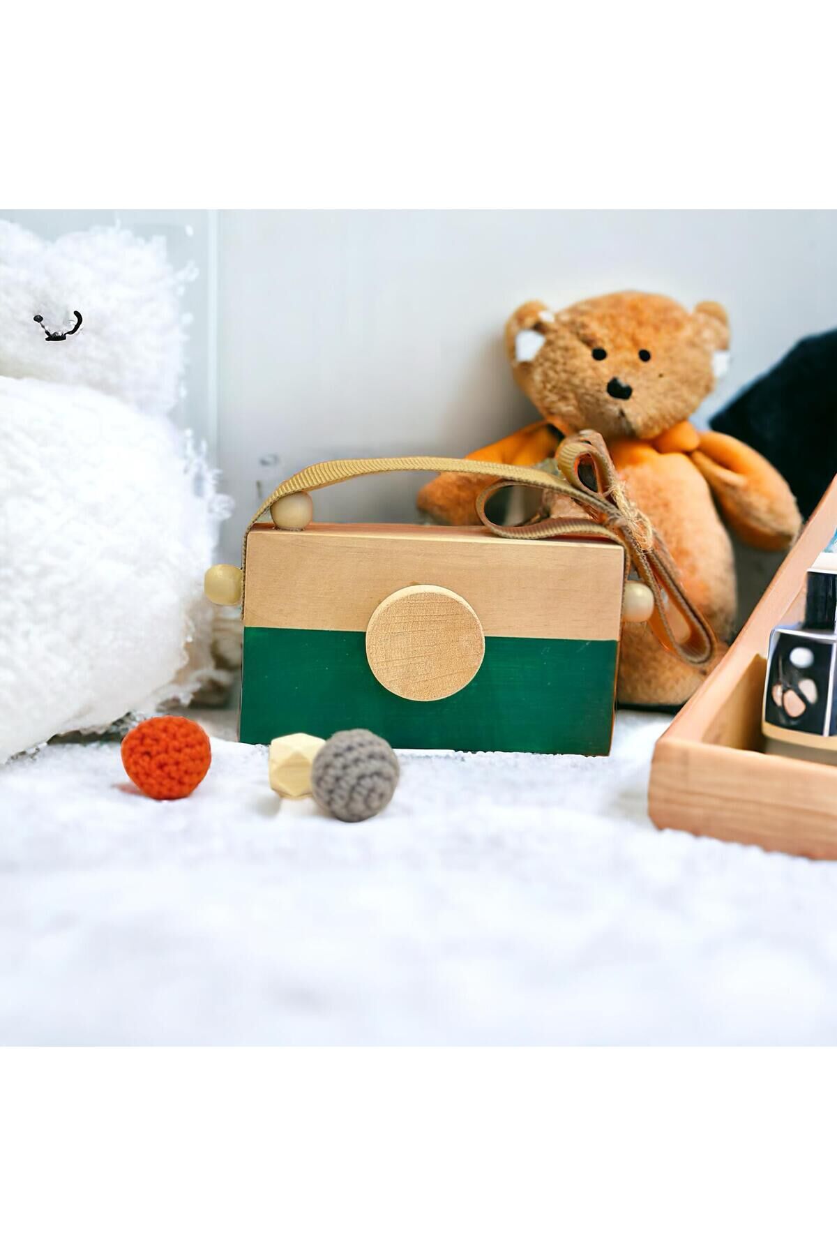 Ahşap Waldorf Fotoğraf Makinesi, Eğitici Bebek Kamera Oyuncağı,Bebek Odası Dekoru Hediyelik