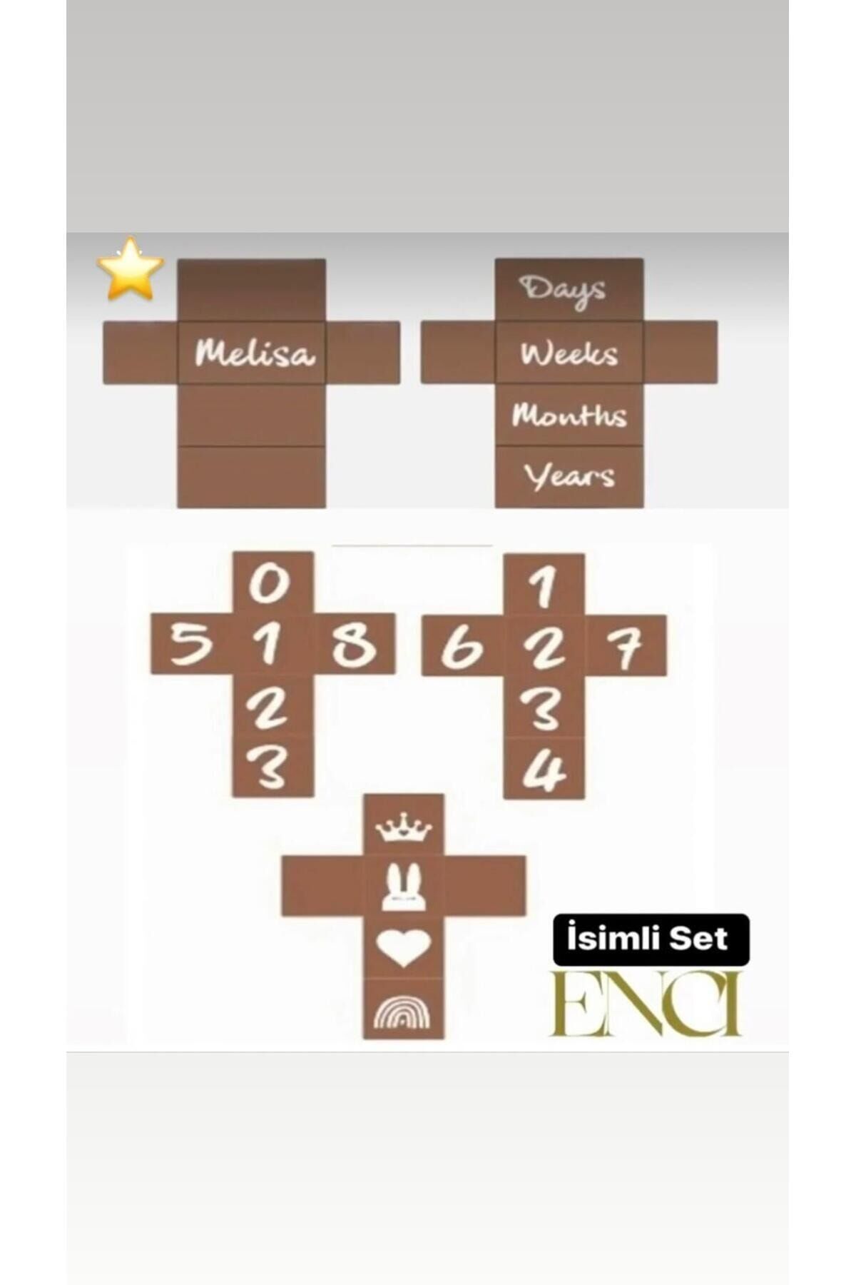 İsim belirtmeniz halinde isimli olarak gönderilmektedir . Hamilelik ve annelik sürecinde bebeğinizin ve sizin özel anlarınızı fotoğraflayabilirsin. ; Rakamlar ve emojiler özel el işçiliği ile ihtiyaç sahibi kadınlarımız tarafından yapılmaktadır. ; Bebek odalarında ve ev içersinde tarih hafta kombinleriyle dekor amaçlı kullanabilirsiniz ; Gün * hafta * ay * yıl kombinasyonları yapabilir ayrıca doğum hamilelik hediyeleri için çok özel bir üründür ; Paket içeriği 5 adet ahşap küp ; 100 x 50- 1 adet isim küpü ; 100 x 50 - 1 adet prizma günlük -Haftalık - Aylık - Yaşında ; 50 x50 - 2 adet rakam küpü 50 x 50 - 1 adet emoji simgeleri küpü ;