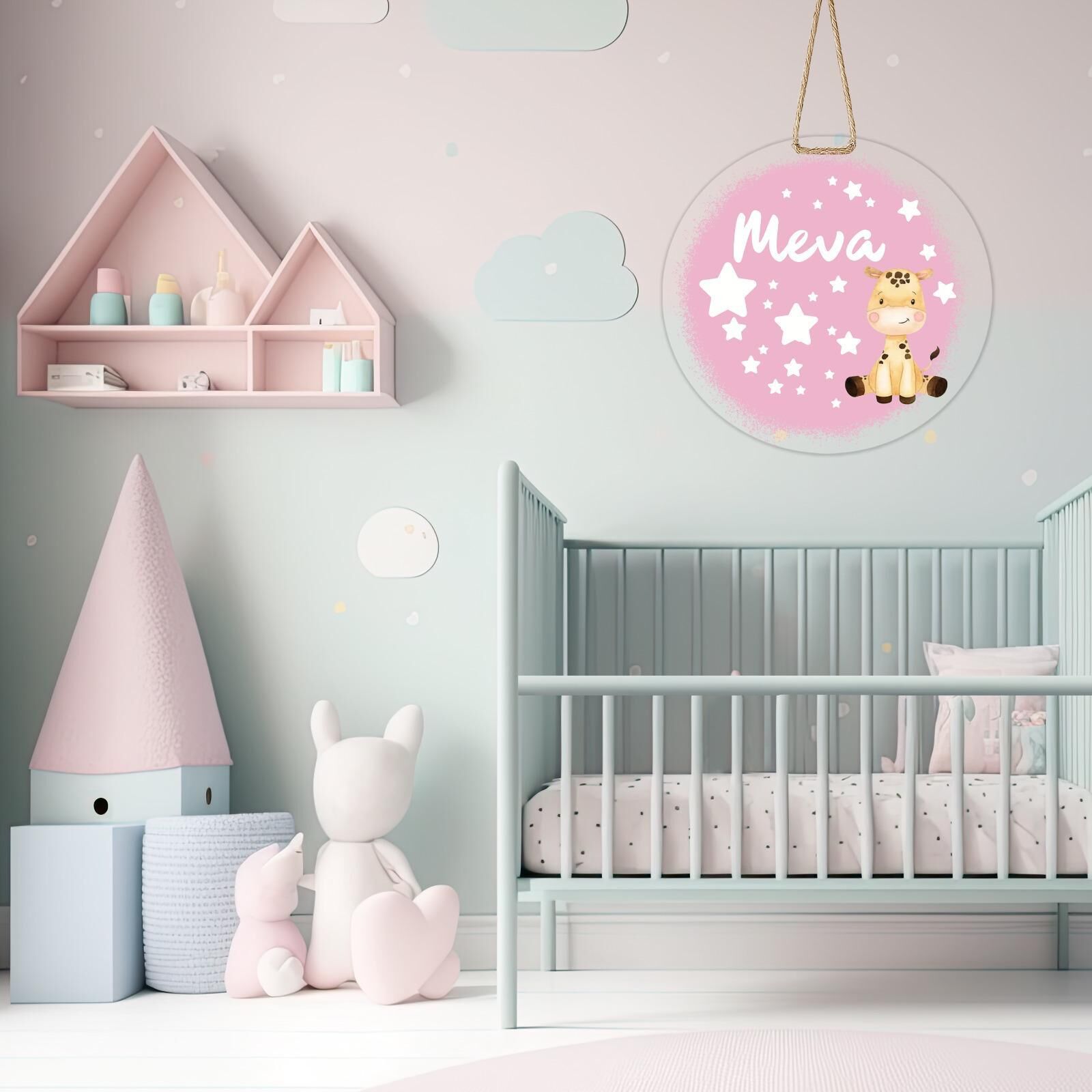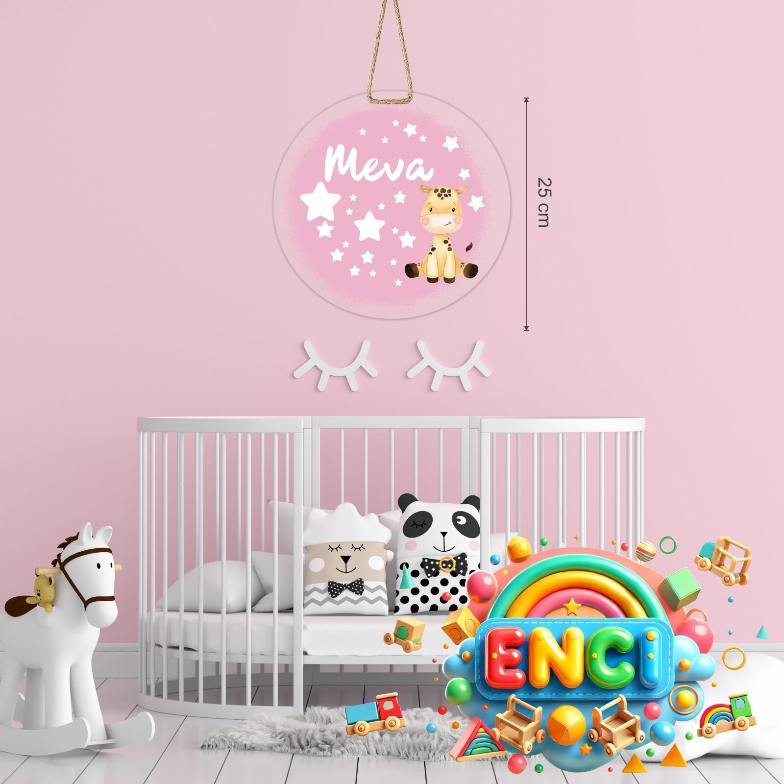Bebeğinizin odasına sevimli bir dokunuş katmak için özel olarak tasarlanmış kapı ve duvar süsü.; Aslan figürü ve yıldız detayları ile hazırlanır, üzerine istediğiniz isim eklenerek tamamen size özel hale getirilir.; 25 cm çapındaki yuvarlak tasarımı, dayanıklı malzemesi ve doğal jüt askı ipi sayesinde kolayca asılabilir.; Bebek odası kapısı, duvar dekoru veya fotoğraf çekimlerinde arka plan olarak kullanılabilir.; Özellikler:•Kişiye özel isim baskısı•25 cm çapında yuvarlak tasarım•Canlı renkler ve yüksek kaliteli baskı•Dayanıklı MDF veya pleksi malzeme•Doğal jüt ip ile kolay asma•Bebek odası ve fotoğraf çekimleri için idealNot: Sipariş sırasında eklemek istediğiniz ismi belirtiniz.