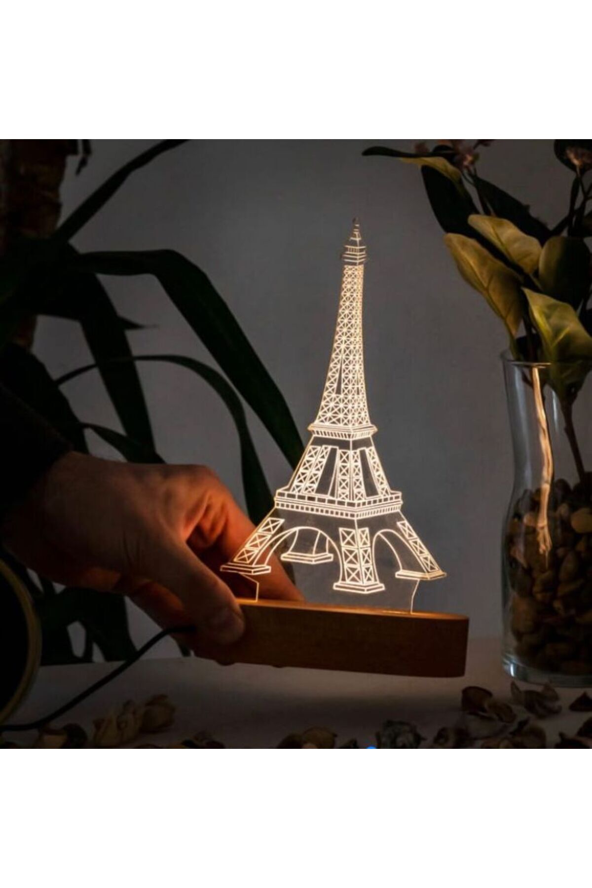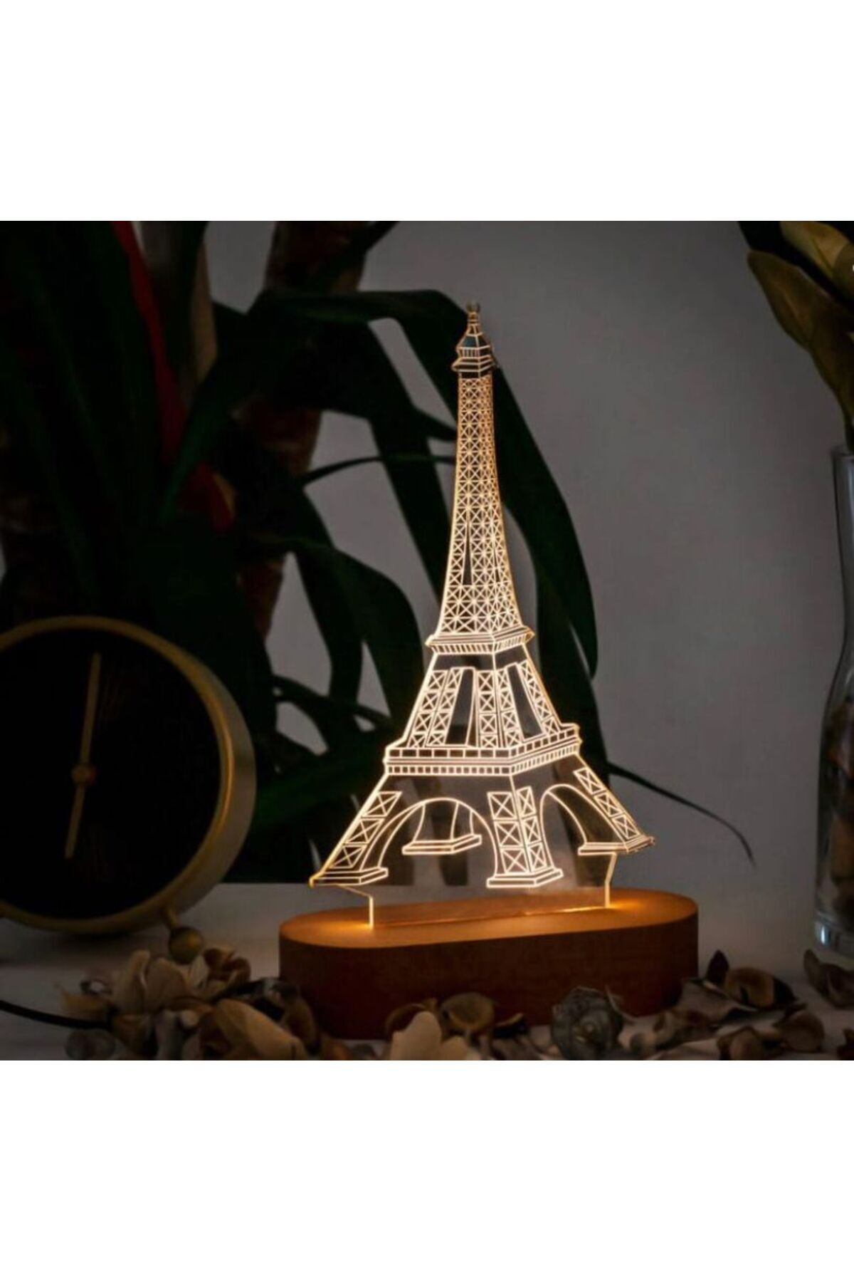 Standart renk seçeneğiyle, her türlü dekorasyona uyum sağlayan Paris Eyfel Kulesi 3D gece lambası, mekanınıza romantik bir dokunuş katıyor; Gençlerin beğenisine hitap eden tasarımıyla, sevdiklerinize özel bir hediye olarak düşünebileceğiniz bu lamba, onların odalarına neşe ve şıklık getiriyor; Dekoratif ve fonksiyonel bir aksesuar olarak tasarlanan bu ürün, gece lambası olarak kullanıma uygun olup, aynı zamanda dekoratif bir obje olarak da dikkat çekiyor;